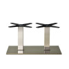 Podnožje za mizo art. 405Q je izdelan iz pravokotne inox satinirane spodnje plošče, dveh inox satiniranih kvadratnih cevi ali dveh lesenih stebrov (bukev natur ali wenge) in dveh križev za pritrditev mizne plošče (iz litega aluminija). Oba križa sta prašno lakirana z epoxi lakom črne barve. Podnožja se lahko na željo barvajo tudi v vseh barvah iz RAL lestvice. Spodnja plošča ima 4 lepilne blazinice in 4 ABS čepke. To podnožje uporabljamo v notranjih in zunanjih prostorih. Primerno je za zunanje terase, kavarne, bare, restavracije, itd...