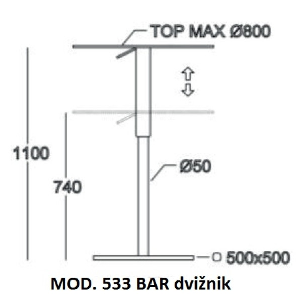 art. 533 DVIŽNA (plin) 50 x 50 x 74 -110 cm plošča max. FI 80 cm