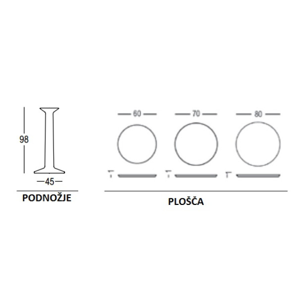Dimenzija plošče:  fi 60,  70,  80 cm