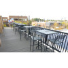 Ogrodje, sedež in naslon: 4 jeklene noge so galvansko zaščitene ter poliestersko barvane v antracit ali belo barvo.