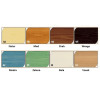 Izdelan je v več barvnih variantah: natur, v barvi medu, v barvi oreha, wenge, v beli barvi, modri ali zeleni barvi