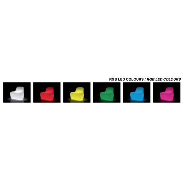 V fotelj se vstavi LED RGB lučka, ki je namenjene za notranjo uporabo ali lučka namenjena za zunanjo uporabo. S tem ustvarimo čudovit ambient, ki kar kliče po obisku.