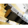 Sedišče in hrbtni naslon ter rokonaslon so oblazinjeni in tapecirani v blago ali umetno usnje različnih barv.