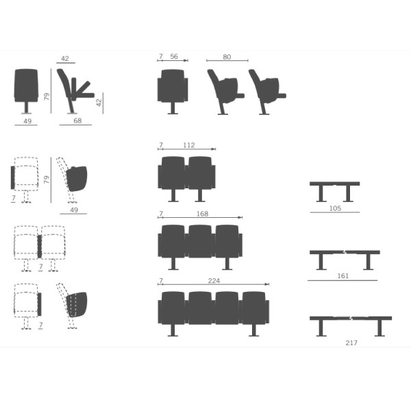 Rokonasloni: oblazinjeni ter tapecirani v blago ali umetno usnje; so krajni ali tudi vmesni rokonasloni med sedeži