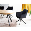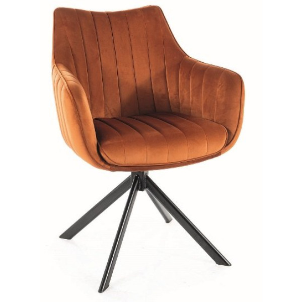 Sedišče in hrbtišče: školjka iz jeklenega okvirja oblazinjena v zelo kvalitetno blago Velvet različnih barv. Stol ima nizek hrbtni naslon. Sedež z naslonom ima funkcijo vrtenja do 180 stopinj in avtomatskega povratka v prvotni položaj.
