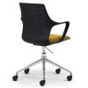 Sedišče in hrbtišče:  perforirana školjka z rokonasloni iz polipropilena (bela, črna, siva barva); sedišče oblazinjeno v blago, eco usnje ali goveje usnje različnih barv.