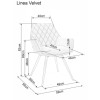 Sedišče in hrbtišče:  školjka iz jeklenega okvirja oblazinjena v zelo kvalitetno blago Velvet različnih barv. Stol ima nizek hrbtni naslon.
