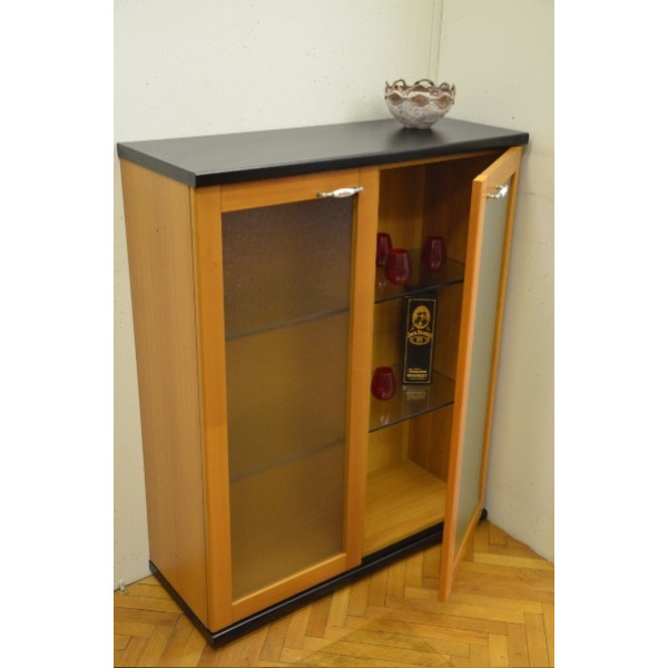 - vrata so steklena z lesenim okvirjem, v notranjosti so steklene police