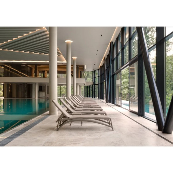 Ležalnik ATLANTIC je izdelan iz polipropilena s stklenimi vlakni v kombinaciji z močnim umetnim blagom. Ima 4 pozicije za regulacijo hrbtnega naslona.