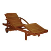 Ležišče je pregibno v podkolenskem predelu in hrbtni naslon nastavljiv v več pozicij naklona. Ležalnik ima rokonaslone, kolesa za lažje premikanje in praktično izvlečno mizico. Tudi blazino je možno naročiti.