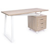 Pisalna miza ARMANDE je izdelana iz oplemenitene iverne plošče v lesnem vzorcu ter kovinskega ogrodja v beli barvi.. Vse je robljeno z ABS trakom. Komplet sestavljata miza in predalnik. Je idealna za uporabo v domači pisarni. Predalnik ima 3 predale in stoji na belih kovinskih nogicah,