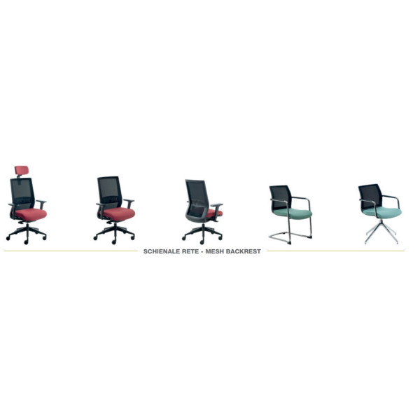 Pisarniški stol Karma Net je vrtljiv in po višini nastavljiv pisarniški stol z fiksnimi rokonasloni, z nastavljivimi rokonasloni (več variant), z alu rokonasloni ali brez rokonalonov.
