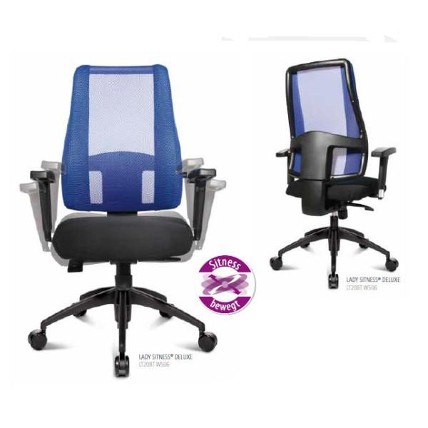 Pisarniški stol LADY DELUXE SITNESS je bil razvit posebej za ženske. Posebnost stola je BODY TEC GELENK SYSTEM, ki omogoča gibanje sedeža v vse smeri. V sedežu je vgrajen sistem 7 različnih trdot, ki deluje podobno kot vzmeti.