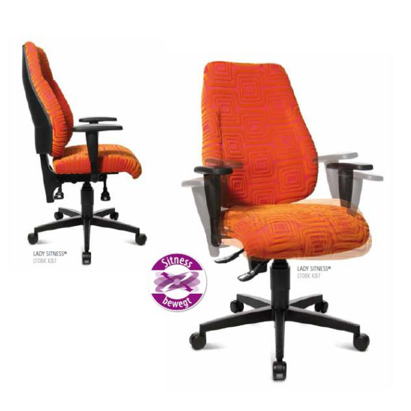 Pisarniški stol LADY SITNESS je bil razvit posebej za ženske. Posebnost stola je BODY TEC GELENK SYSTEM, ki omogoča gibanje sedeža v vse smeri. V sedežu je vgrajen sistem 7 različnih trdot, ki deluje podobno kot vzmeti.