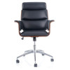 Pisarniški stol OREGON je vrtljiv in po višini nastavljiv stol z TILT sistemom naklona ter rokonasloni. Oblazinjen je v črno eko usnje. Osnova je školjka iz vezane plošče v orehovem lesnem vzorcu. Podnožje stola je kovinsko.