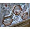 Lesena viseča polica v obliki satja je v celoti iz borovega lesa, prekrita z naravnim čebeljim voskom, zaradi česar pohištvo spada med ekološko pohištvo.