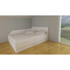 Postelja s predalom WALL je izdelana iz oplemenitene iverne plošče debeline 25mm, ter zaključena z ABS trakom katerega robovi so rahlo zaokroženi. Stranica postelje je ob steni povišana, da uporabnik ne prihaja v stik s hladno steno. Stena je tako zaščitena pred umazanijo, ki bi se sčasoma uporabe pojavila. Na voljo je leva ali desna postavitev postelje, odvisno od konfiguracije prostora uporabnika.