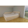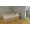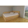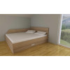 Postelja s širino 160, 180 ali 200 cm ima vgrajeno sredinsko nosilno letev na katero je pritrjena sredinska noga, ki podpira ležišče na sredini. Okvir postelje je spojen s kovinskim spojnim okovjem, ki ga lahko montiramo na različnih višinah. S tem prilagodimo postavitev vzmetnice na ustrezno višino v razponu 8 cm višine. Višje kot je vzmetnica, lažje vstajamo iz postelje.Pod ležiščem je dodan izvlečni predal v katerega lahko spravimo vso posteljnino ali pa kaj drugega. Predal je po celotni dolžini postelje ali pa zaradi uporabe nočne omarice po dolžini krajši.