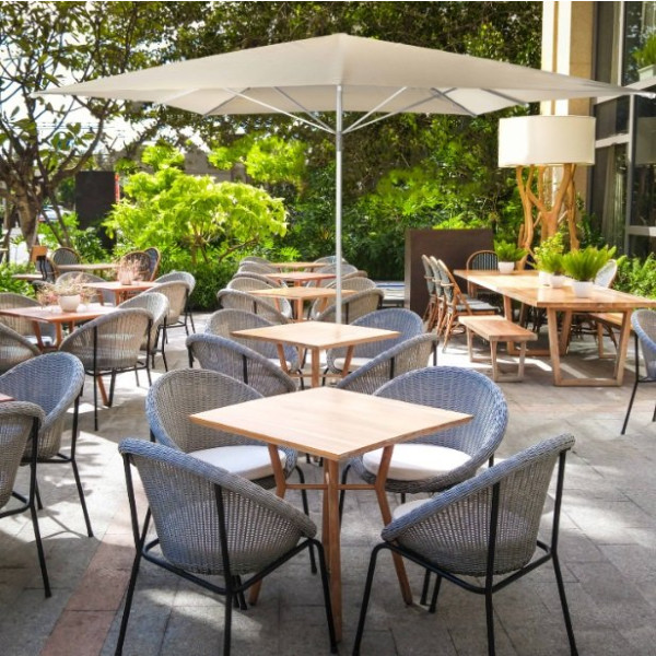 Uporaba senčnika na velikih terasah hotelov ali restavracij