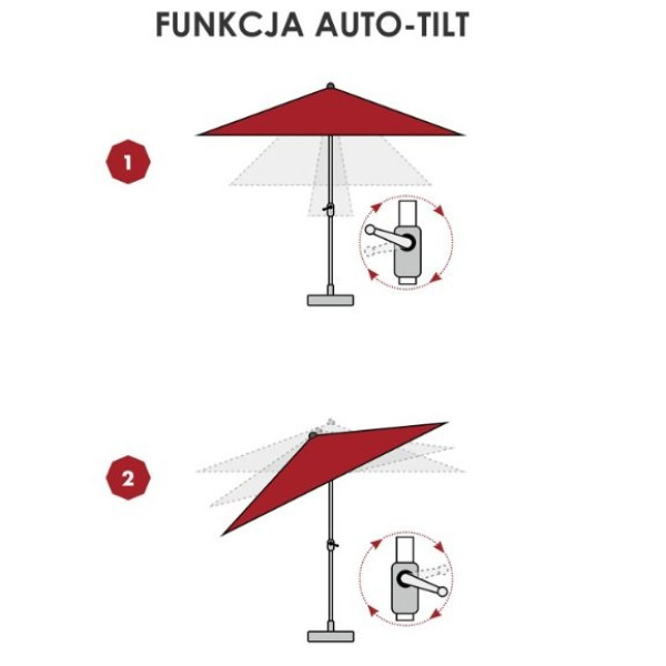 Priročna funkcija "Auto-Tilt" omogoča samodejno nagibanje strehe senčnika z vrtenjem ročice. Blago senčnika lahko ročno operemo in ponovno uporabimo.