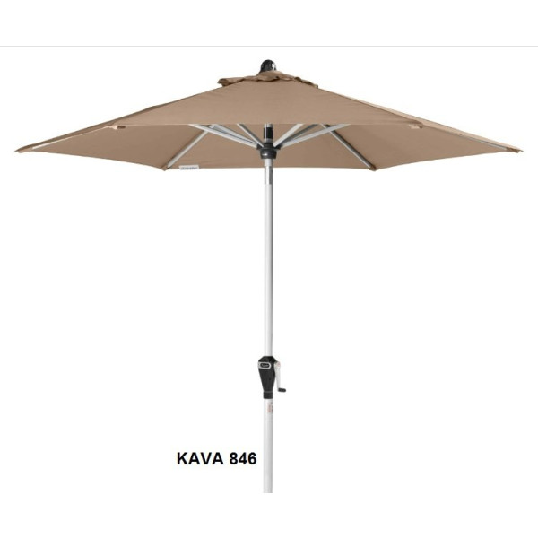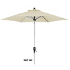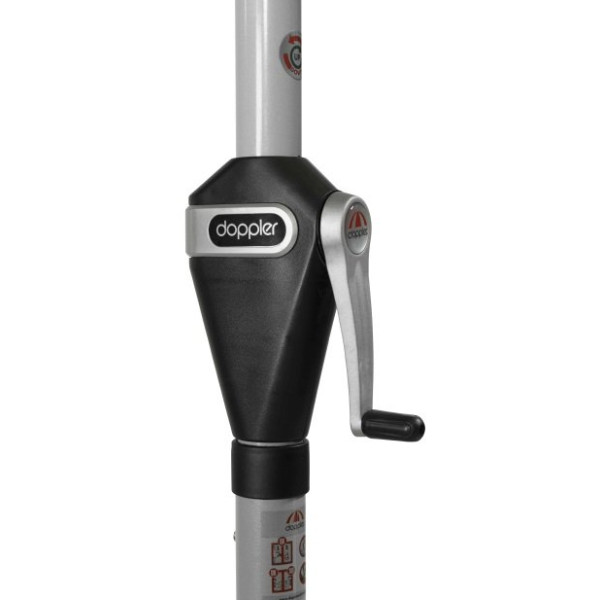 - Drog senčnika je izdelan iz aluminija v srebrni barvi debeline 35/38 mm (drog iz dveh delov) z avtomatskim kovinskim pregibom z navojno ročico
