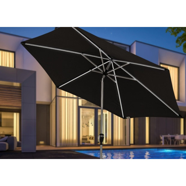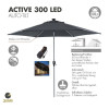 Senčnik ACTIVE fi 300 cm LED je srednji senčnik s centralnim drogom izdelan iz aluminija v srebrni barvi in samodejnim pregibom. Običajno se uporablja na terasah hotelov in restavracij. Lahko se uporablja tudi doma ob bazenu ali letni kuhinji za druženje. Na 6 šipkah so montirani LED trakovi. Ti so povezani s sončno celico, ki se nahaja na vrhu senčnika. Priložena je tudi baterija z USB polnilnikom, kar omogoča daljši čas uporabe LED luči. Na drogu se nahaja stikalo za vklop LED luči. Senčnik je zelo priljubljen zaradi svojih lastnosti.