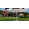 Senčnik četvorček z aluminijastim drogom in teleskopskim sistemom zapiranja nad mizami.