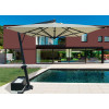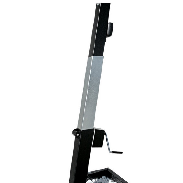 - Ima patentirano dvižno napravo, da se senčnik zapira nad mizno ploščo