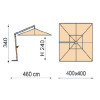 Dimenzije senčnika: Minimalna obtežitev senčnika: