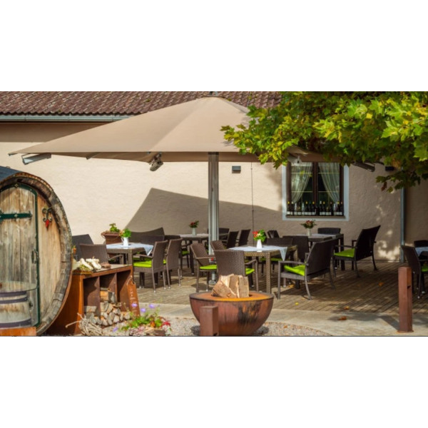 - Na šipke senčnika je možno montirati infrardeča grelna telesa za hladnejše dni v kompletu 2 kos po 1400W, se vrtijo in nagibajo,