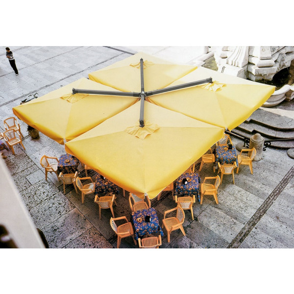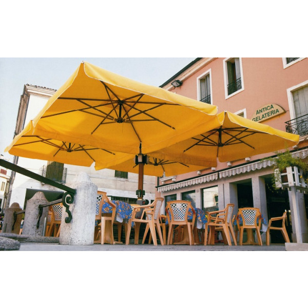 Senčnik četvorček z lesenim drogom.