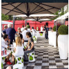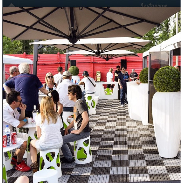 Postavi se na tla. S podstavno ploščo se pritrdi v tla. S tem je začiteno proti vetru in kraji.