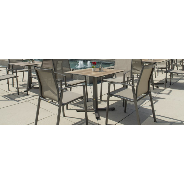 Stol GENF primeren za zunanjo in notranjo uporabo v gostinstvu in turizmu je prvovrsten izdelek iz aluminija.