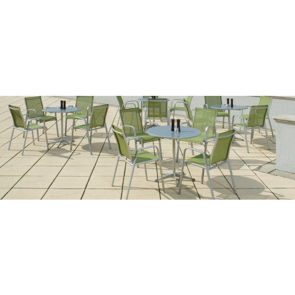 Največ se uporablja na hotelskih vrtovih in terasah ter v restavracijah, ker je odporen na vremenske vplive (aluminij je prašno lakiran v srebrno, metalik sivo, polarno belo šampanjec ali karbon barvo).