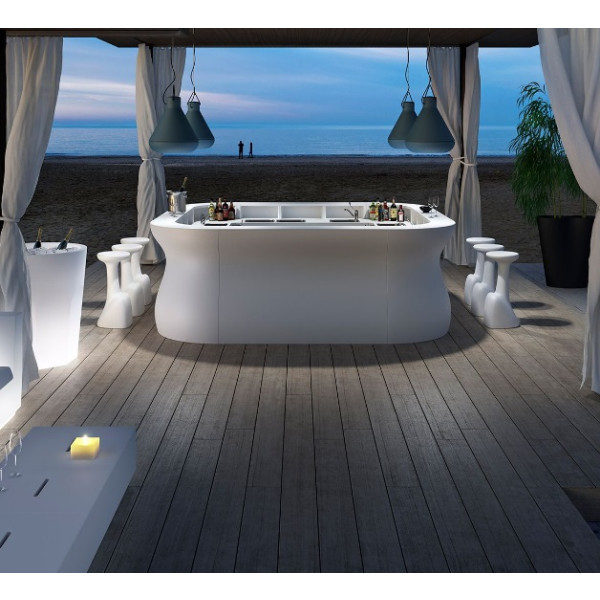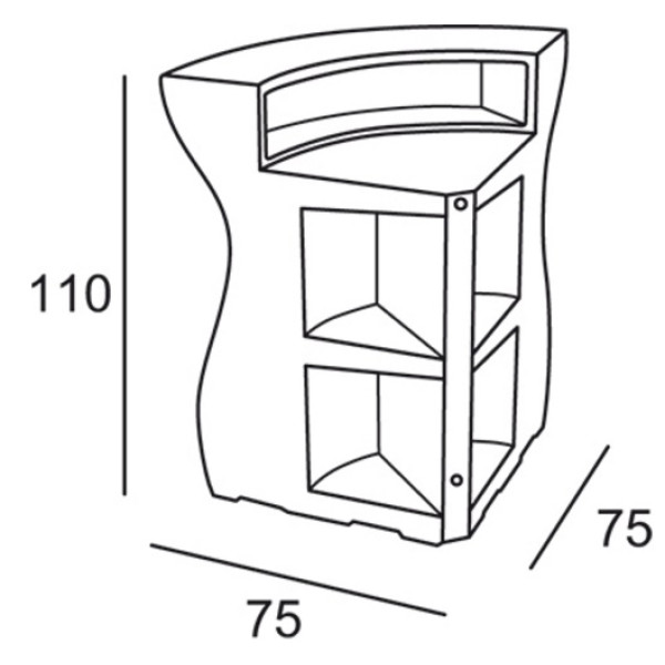 Točilni pult Bartolomeo kotni element je izdelan iz polietilena. Je trendovske oblike in namenjen za postavitev na vrtovih in terasah, plažah, bazenih, raznih prireditvenih prostorih, v avlah trgovskih centrov, itd. Gostinci lahko naredite v svojih lokalih malo drugačen, poseben ambient. Uporablja se v odprtih in zaprtih prostorih. V kombinaciji z ravnim delom točilnega pulta je možno sestaviti različne kombinacije in oblike celotnega točilnega pulta.