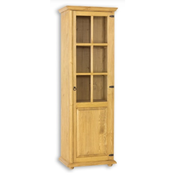 Vitrina CILKA 09 je izdelana iz masivnega borovega lesa. Stranice vitrine so ravne brez utorov.